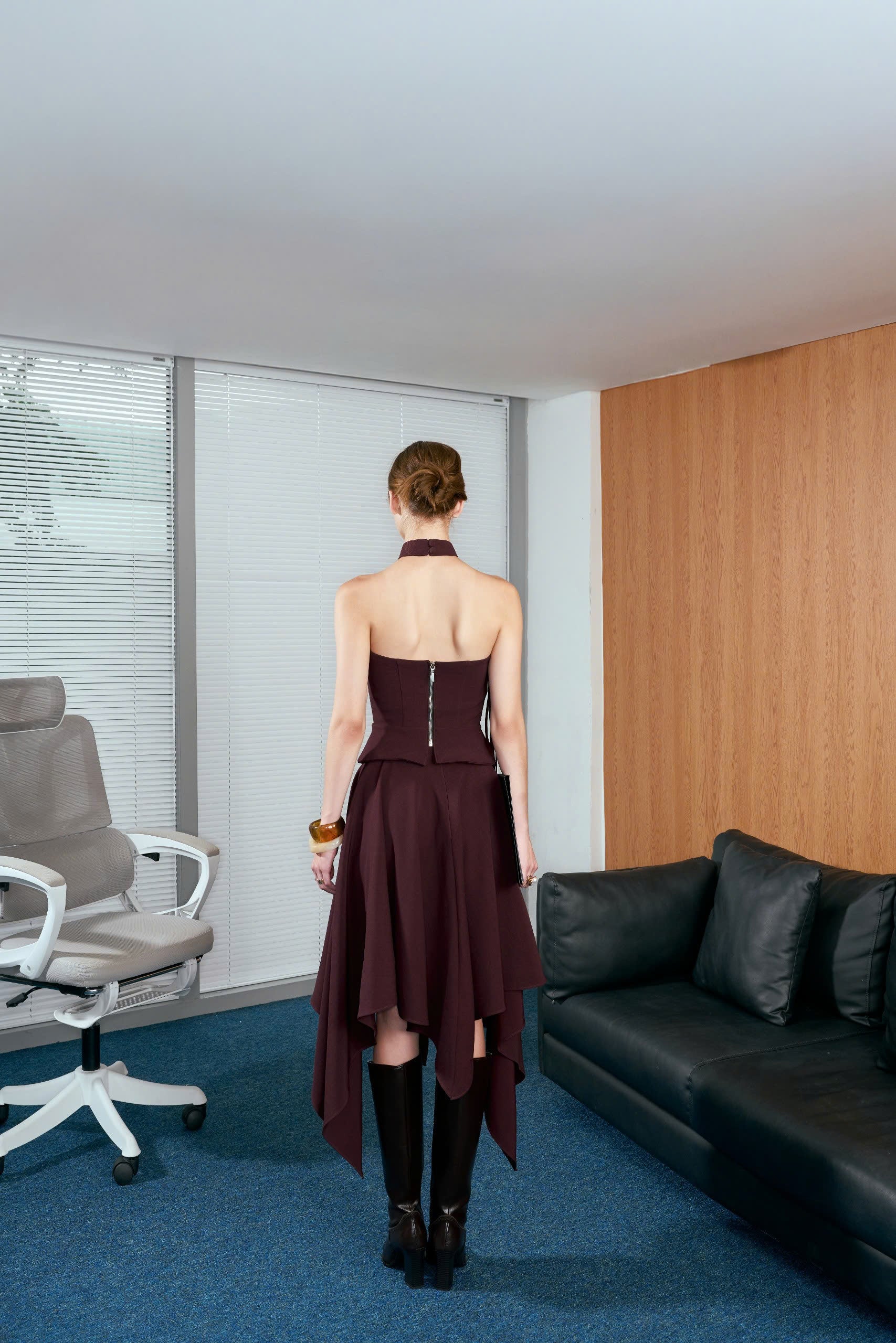 Versa Halter Lace-up Top and Handkerchief Midi Skirt Set
