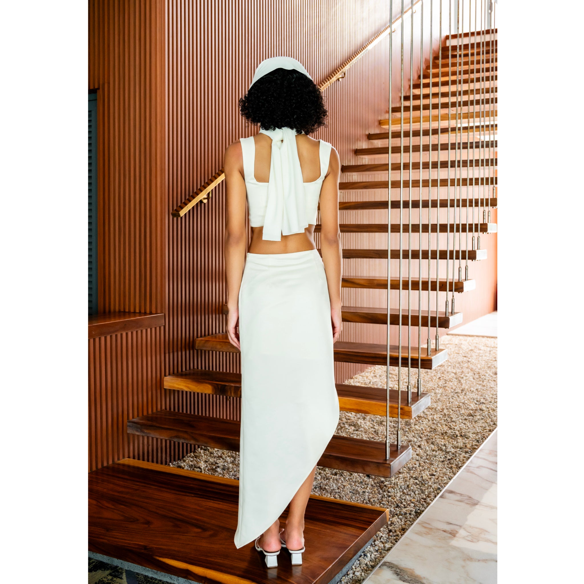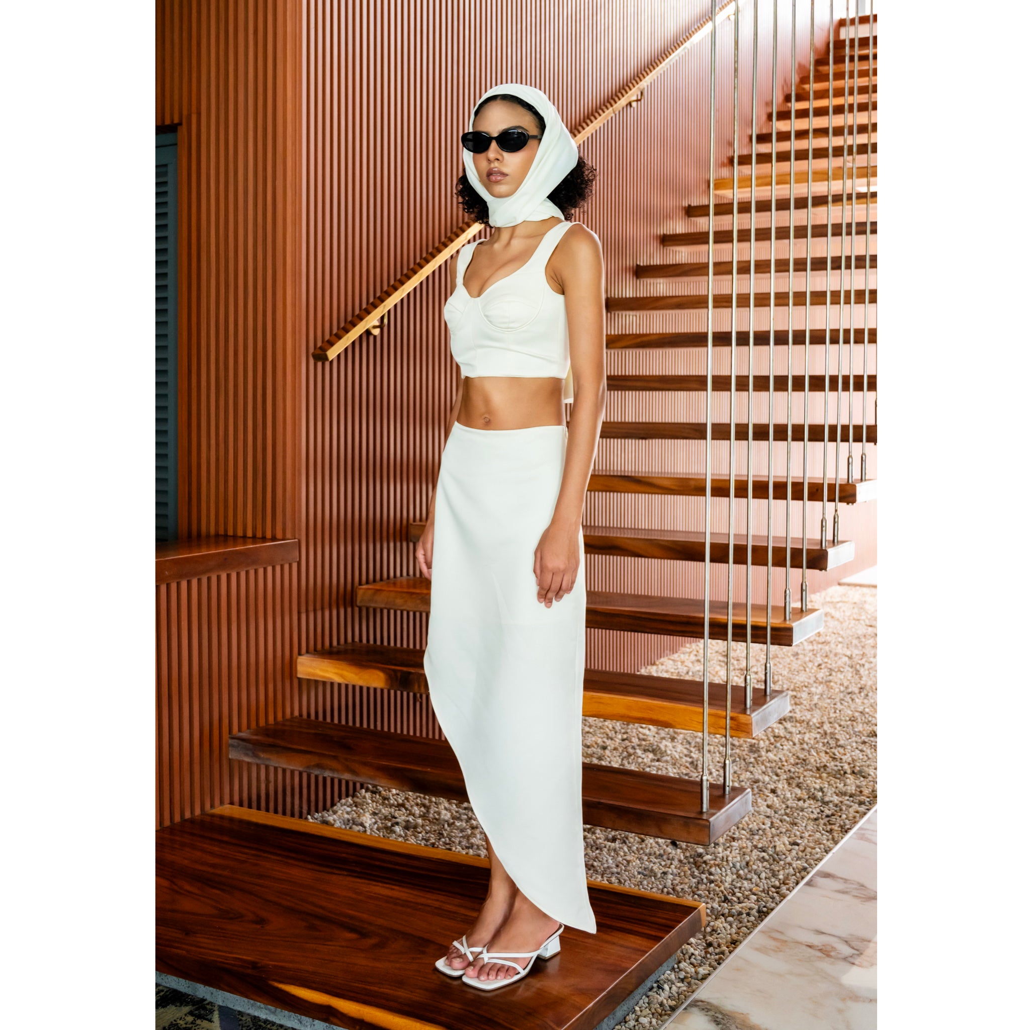 Marina Temptation Sculpted Ivory Set Crop Top & Asymmetric Skirt - Look 2